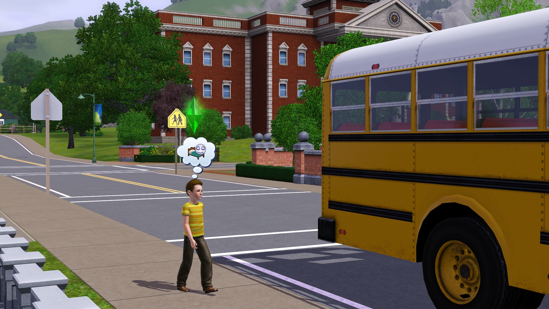아침부터 신나게 논 뒤에 학교에 등교하는 로버트.